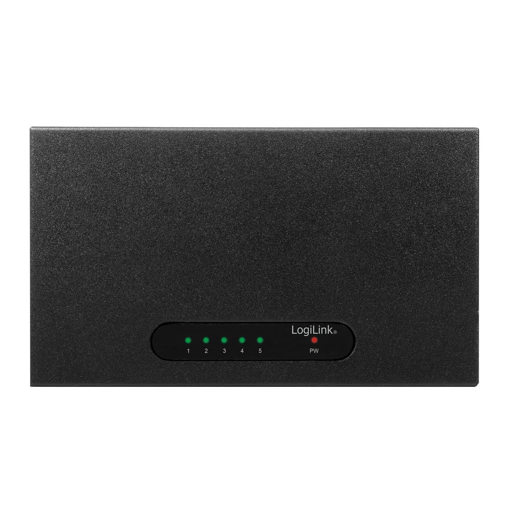 - LED-indikator: 1x Power LED-Green, 5x Port LEDs: Link/Activity-Green