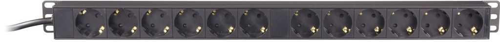 DELTACO grenuttag med 12xCEE 7/4 uttag, 1xCEE 7/7 anslutning, 3m kabel, svart