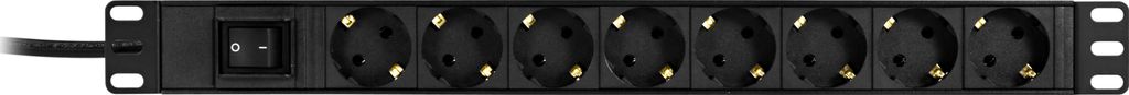 DELTACO Grenuttag med 8xCEE 7/4 uttag, 1xCEE 7/7 anslutning, strömbrytare, 19" 1U, 3m kabel, svart