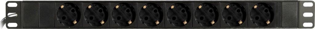 DELTACO grenuttag med 8xCEE 7/4 uttag, 1xCEE 7/7 anslutning, 19" 1U, 3m kabel, svart