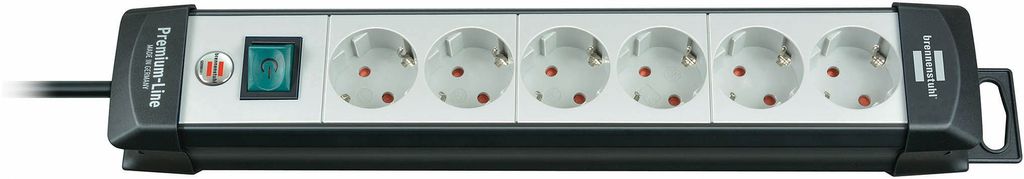 Produktbeskrivning Brennenstuhl Premium-line, grenuttag med 6xCEE 7/4-uttag, 1xCEE 7/7 anslutning, central brytare, petskydd, 5m kabel, svart/gråMax 16A 3500W.