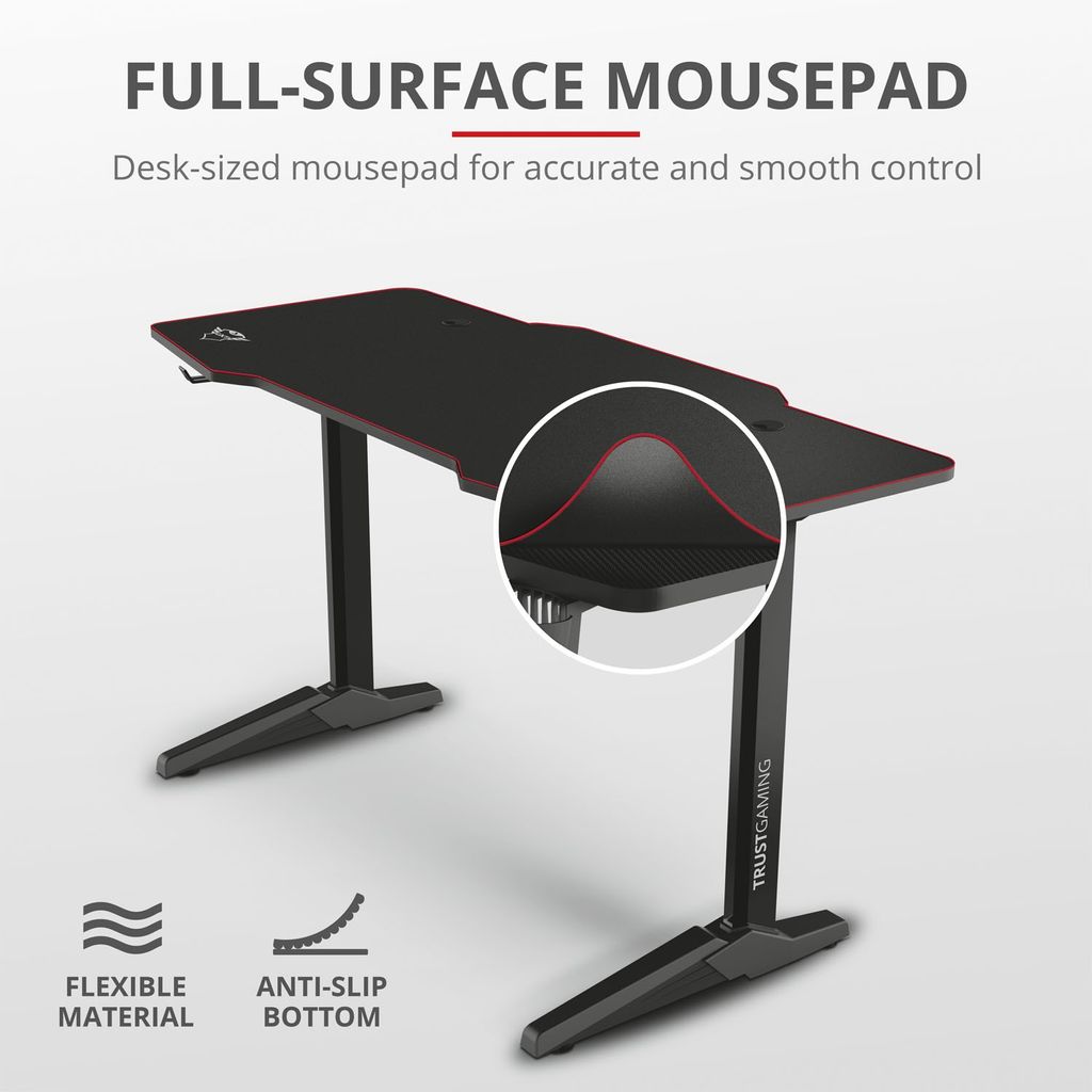 Starta din gamingdator, logga in på ditt favoritspel och skapa dig ett namn. Trust Imperius kommer att vara din stabila grund för att bygga ditt onlineimperium. En stor yta på 140x66cm, ett integrerat kabelhanteringssystem och en musmatta som täcker hela ytan; detta gamingbord har redan lagt grunden för dig.