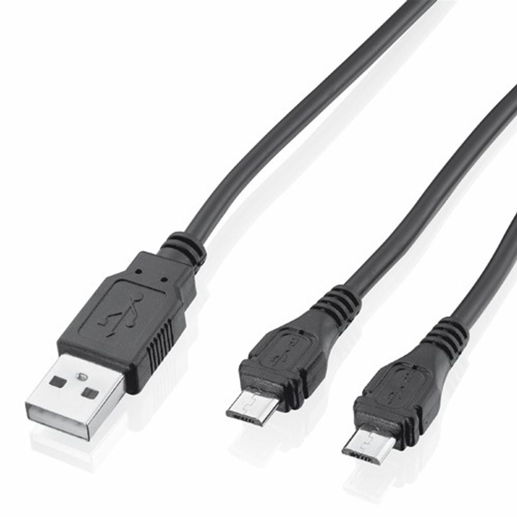 Hållbar 3.5 m lång kabel som tillåter dig att ladda två kontroller samtidigt som du spelar