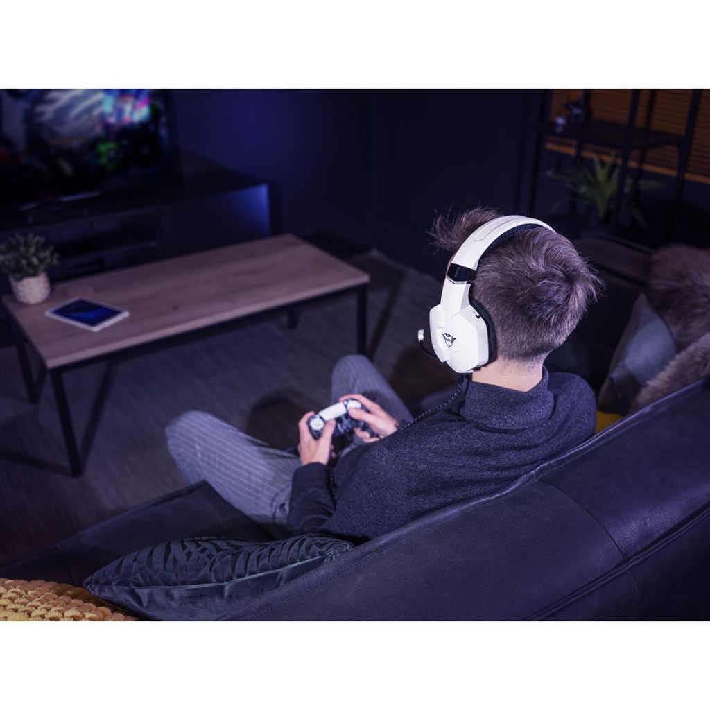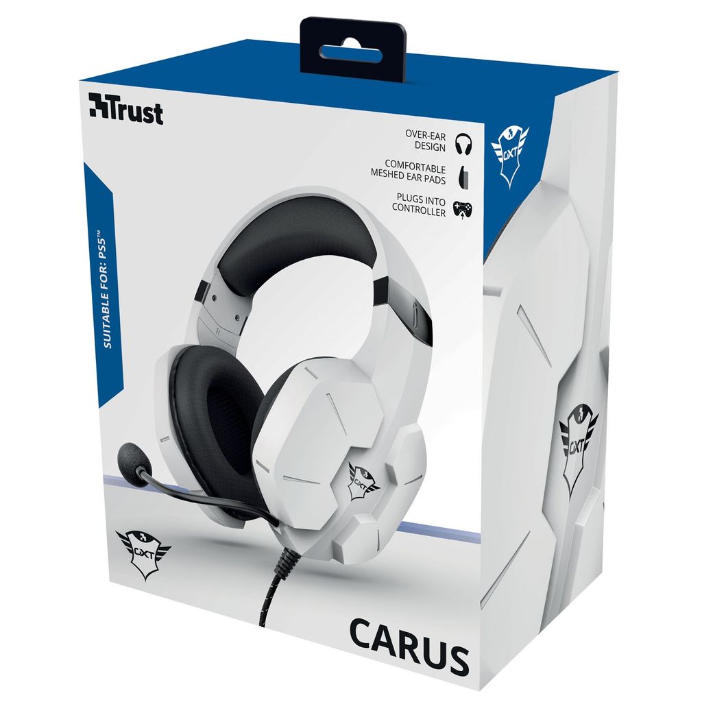 Med Carus har du full kontroll över vad du hör, vad dina lagkamrater hör och hur du vill spela. Styr volymen med volymkontrollen på hörlurarna och stäng av mikrofonen med en knapptryckning. Tack vare 1,2 m aux-kabeln fungerar Trust Carus utmärkt med en PS5-handkontroll, medan Y-kabeln på 1 m gör att du kan spela på en gamingdator.
