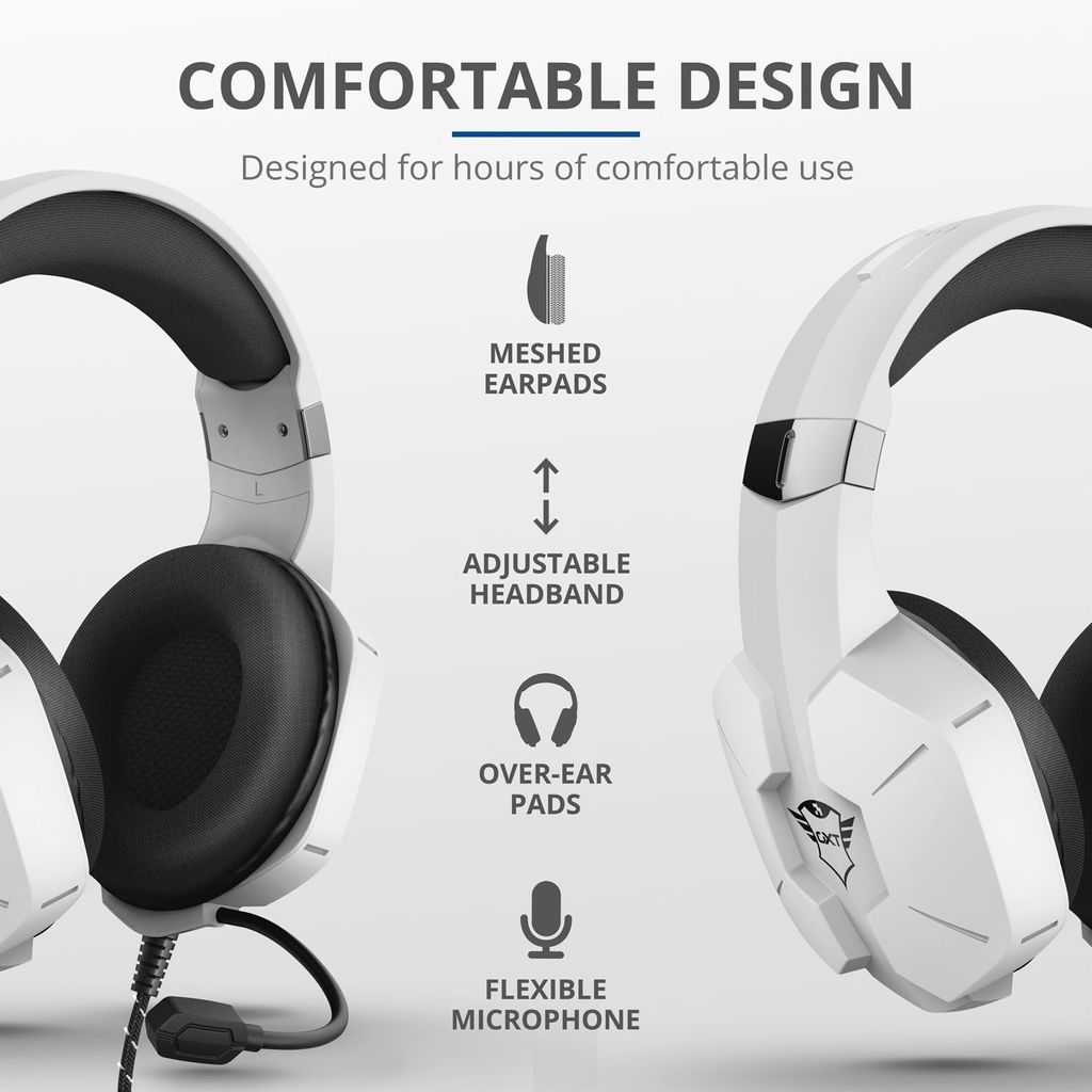 Trust Carus använder stora 50 mm-hörlurselement så att allt som händer i spelet hörs. Högkvalitativt ljud med en dånande bas; det är därför Carus ger dig övertaget i spelet. Tack vare den flexibla mikrofonen kommer dina lagkamrater att kunna höra dig lika bra som du hör dem.