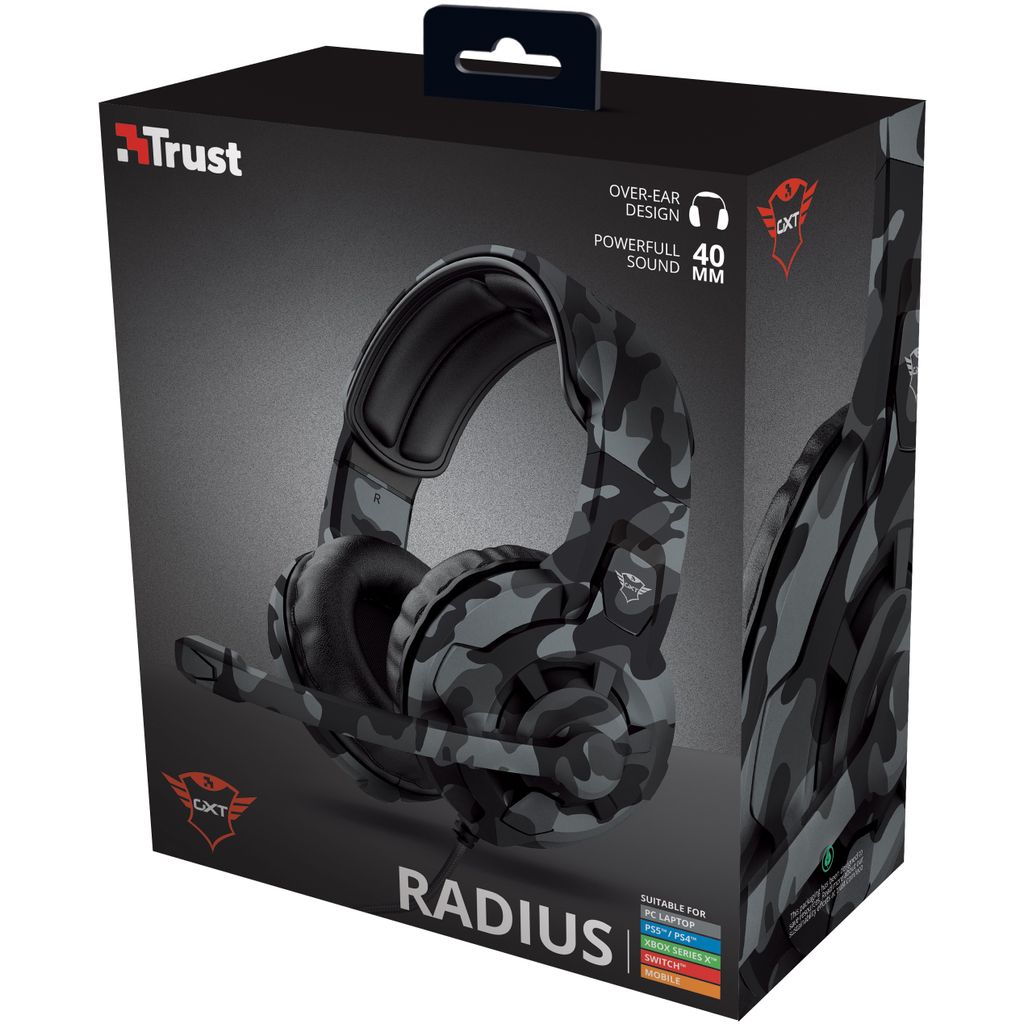 Trust GXT 411K Radius Gaming Headset är din gateway in i spelets rytande värld. Headsetet har tydligt, detaljerade och uppslukande ljud för att förhöja din spelupplevelse.