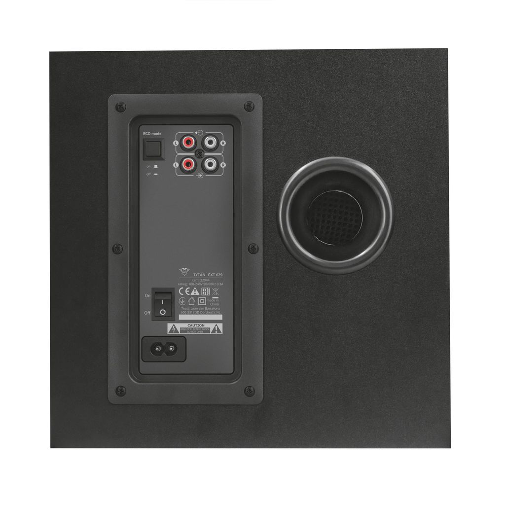 An overwhelming bass power, high-quality sound and an impressive gaming design all combined into one: the GXT 629 Tytan 2.1 RGB Speaker set will change the way you experience sound. Whether playing the latest games, listening to music or watching movies, you will enjoy everything in the best available sounds. This speaker does not only boosts powerful sounds, it bursts with colour! The changing RGB LED illumination on the subwoofer combined with the matte black satellite speakers will match any gaming setup. You can pick between 7 solid colours synced on the bass (red, green, blue, yellow, purple, light blue and white). Or choose a rotation of all colours, a breathing light rotation or bass-synced RGB lights: the possibilities are all yours!