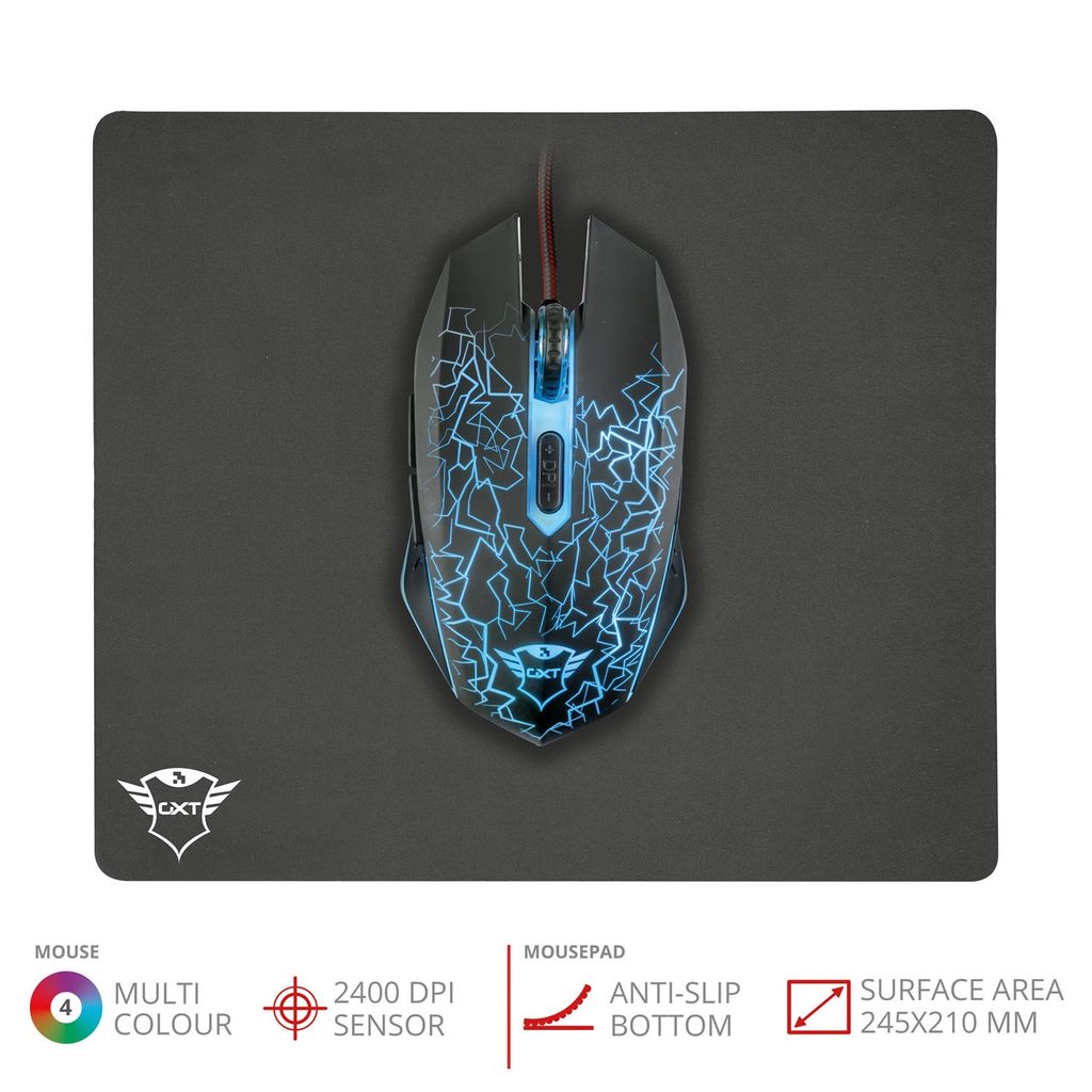 Letar du efter den perfekta uppsättningen av en exakt och kraftfull spelmus och en robust musmatt? Detta Trust GXT 738 Izza 2-i-1-spelset har allt du behöver.