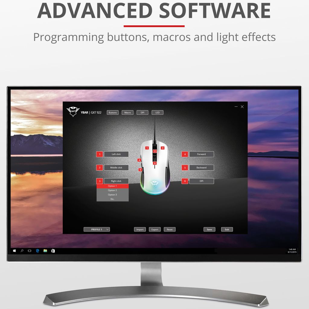 Spela till din fulla potential med Trust Ybar Gaming Mouse. Elegant design, full RGB LED-belysning, bekvämt grepp och vinnande noggrannhet gör detta till verktyget som kommer att förstärka din spelupplevelse.