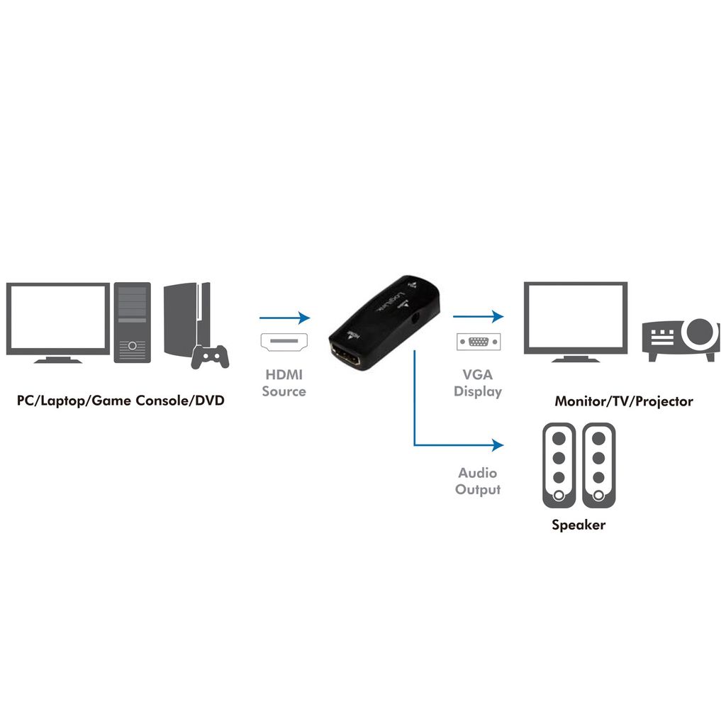 På detta vis kan man ansluta sin HMDI-enhet (t.ex. en PC, bärbar dator, spelkonsol eller DVD-spelare) till en VGA-enhet (t.ex. en bildskärm eller projektor) och spela upp ljudsignalen separat.