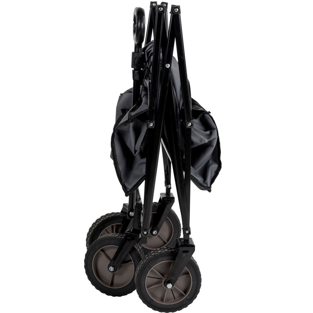 Väl utfälld kan den ta vikt upp till 70kg och storlek på 82 x 63 x 52cm. Hjulen är vridbara och har en ram av stål.