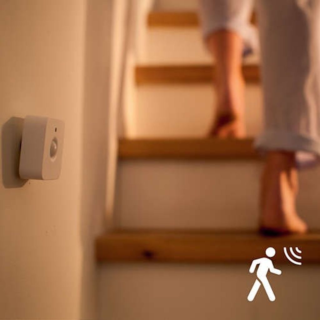 The Philips HUE Motion sensor is here! Now, your own HUE-system welcomes you home, litterally! The motion sensor is driven by batteries and is therefor entirely wireless, allowing you to place it wherever is suits you! This motion sensor reacts on any movement made within its scanning radius and can then execute whatever instructions you have decided for it. It can turn on lights, dim them, or make everything flash in different colors if you want to create a spontaneous disco party.