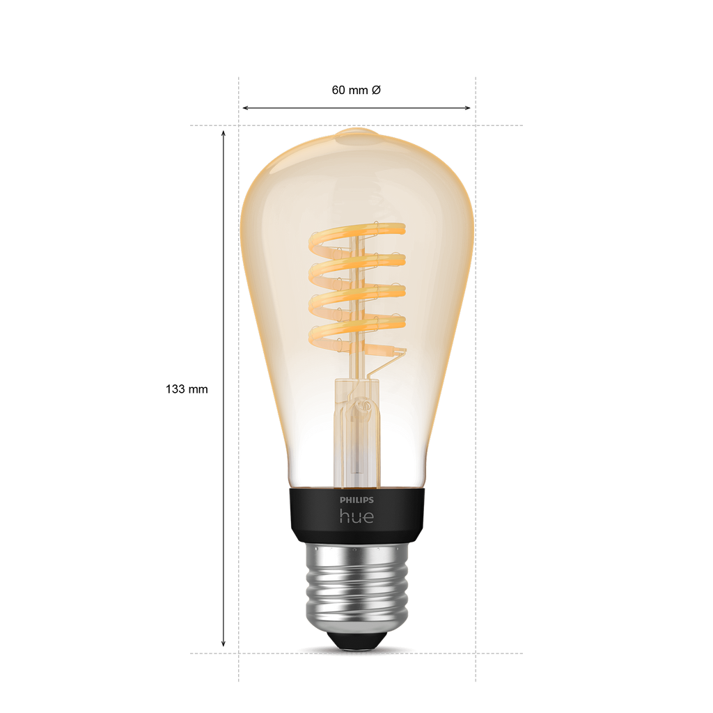 Philips Hue White Ambiance filamentlampa E27 ST64Philips Hue White ambiance filament är unika smarta LED ljuskällor som ger en klassisk touch och mysig atmosfär i valfritt rum.Med en Hue White Ambiance-lampa kan du ändra färgtemperaturen på lampan