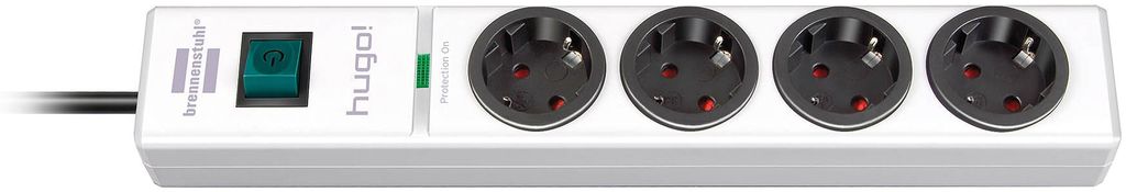 Brennenstuhl Hugo grenuttag, 4xCEE 7/4 uttag, 1xCEE 7/7 anslutning, överspänningsskydd upp till 19500A, central brytare, 2m kabel, petskyddad, vit