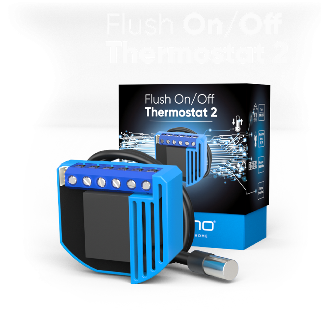 Qubino Flush On/Off Thermostat kan användas för att styra elektrisk golvvärme, vattenburen golvvärme, insticksvärmare till ackumulatortankar, elektriska element etc. Då Qubino Flush On/Off thermostat har en egen temperatursensor är den inte beroende av externa temperatursensorer för att fungera. Du ställer in börvärde via din styrenhet och Qubino Flush On/Off Thermostat reglerar sedan temperaturer mot det inställda värdet.