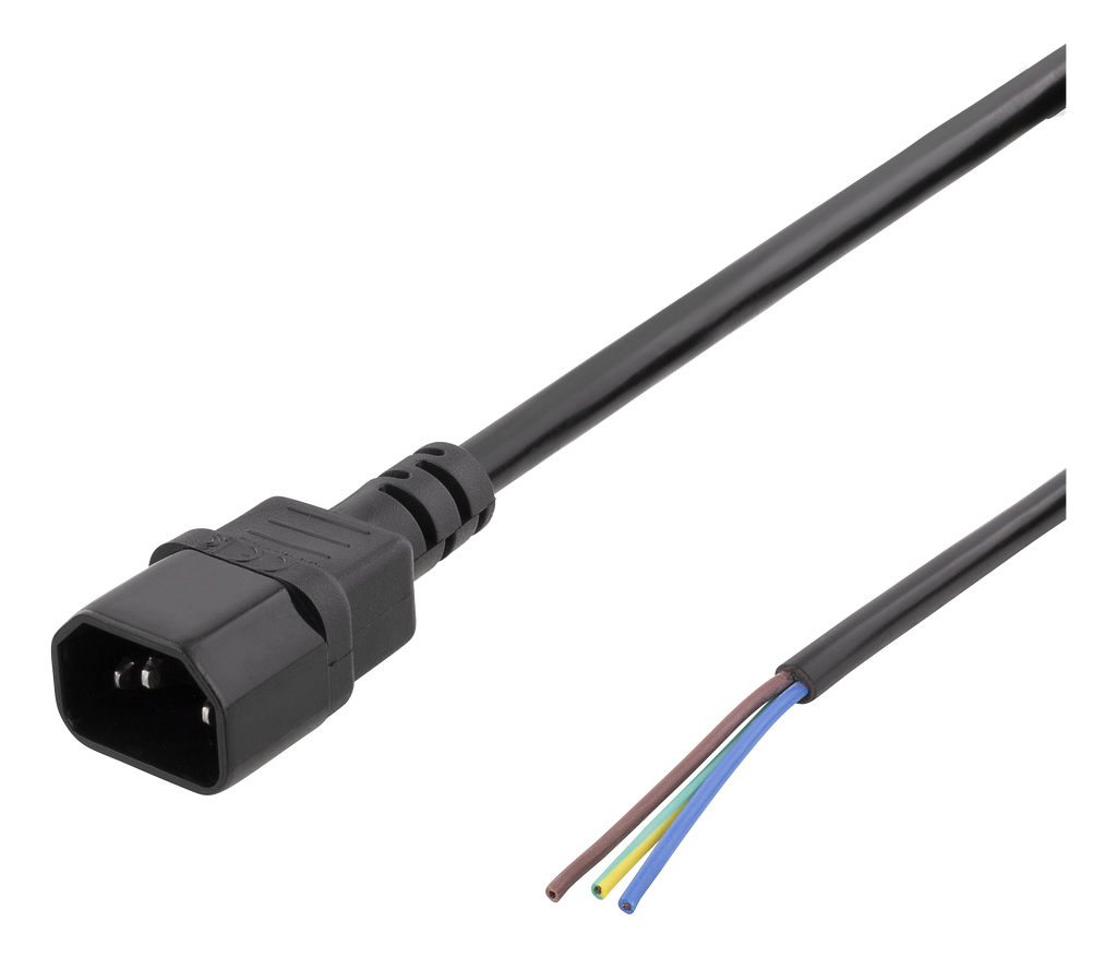 DELTACO C14 till öppen ände, 2m, IEC C14, 10A, svart