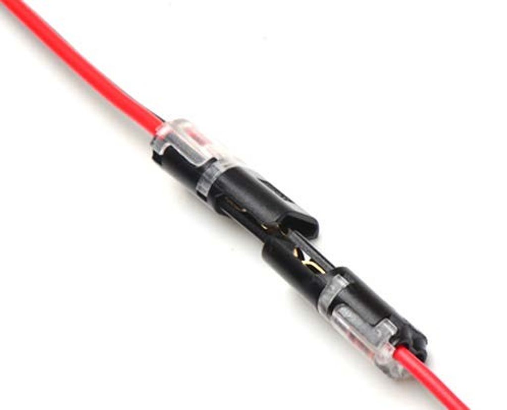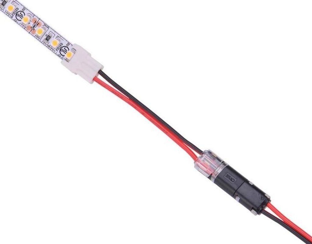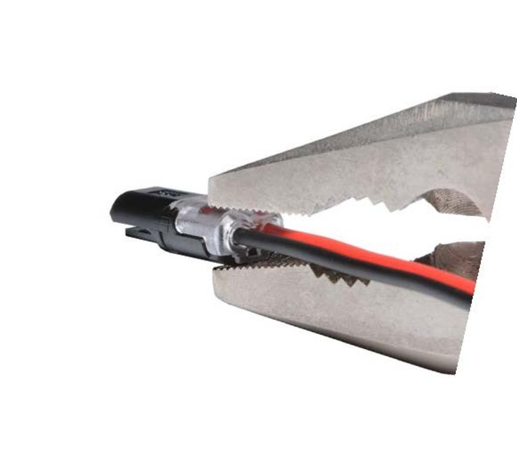 Smart sätt att koppla samman LED-kabel i parallella kopplingar. Du behöver inte skarva sladdarna innan montering då de vassa tänderna i skarven på egen hand skär igenom kabelskyddet.