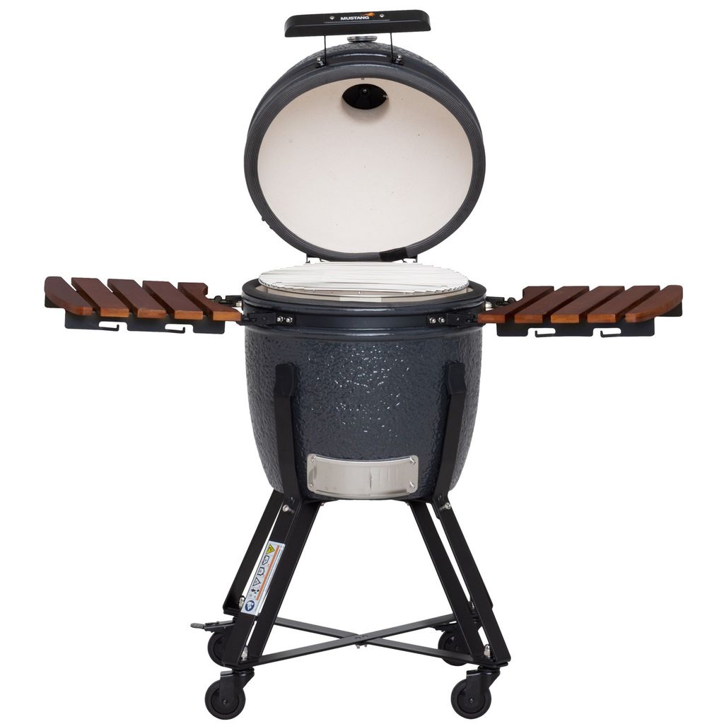 En keramisk Kamado 18? kolgrill för grillning på låg värme under en lång tid.