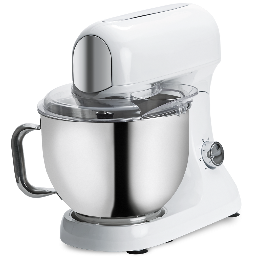 - Tillbehör: stänkskydd, visp, degkrok och spatel/platt visp