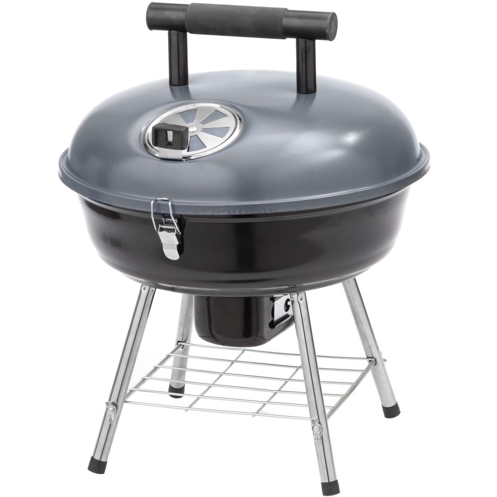 Locket pulverlackad i grått och grillskålen i svart 0,5 mm stål. Förkromat grillgaller med en grillyta på 36 cm. Stålbelagt handtag, ben i rostfritt stål. Arbetshöjdhöjd 30 cm.