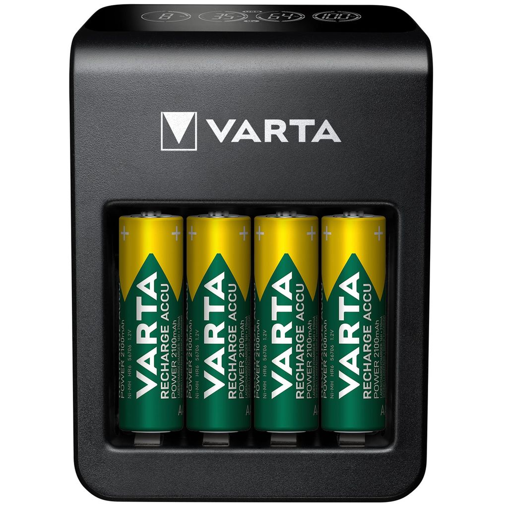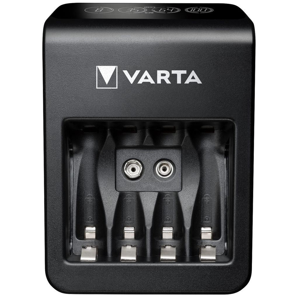Nya VARTA LCD Plug Charger+ är kompatibel med alla AA, AA & 9V NiMH uppladdningsbara batterier och den extra USB porten möjliggör även laddning av externa enheter samtidigt.