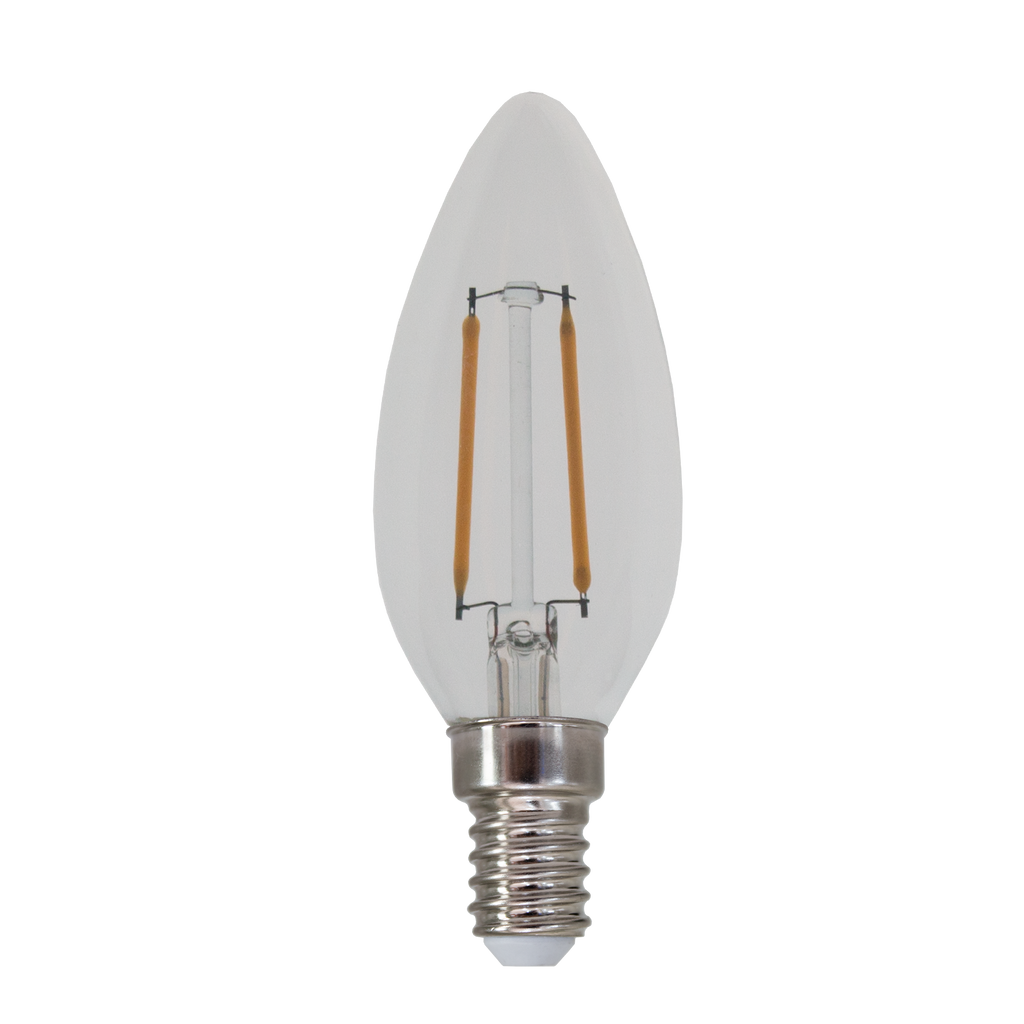 Energisnål LED filament-lampa med E14-sockel.- E14- C35 (kronljus)- 2,2 watt- 250 lumen- Ej dimbar