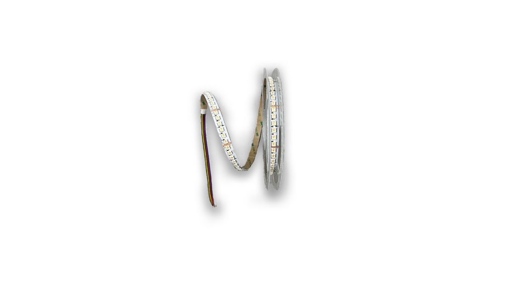 Högkvalitativ, IP20 LED-slinga för 24V drivspänning med 120 RGBTW LEDs per meter, som vid full ljusstyrka kan dra upp till 19,2 W/m. RGBTW innebär att slingan är utrustad med fullt RGB plus ställbart vitt spektrum utan behov för att blanda färger för att uppnå kalla/varma vita toner.