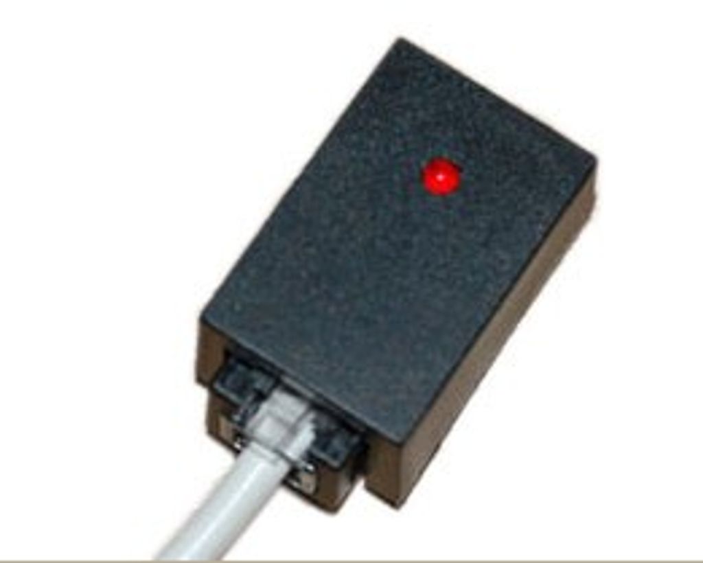 - On the top of the device, there is a red LED that blinks in sync with the detected light pulse.