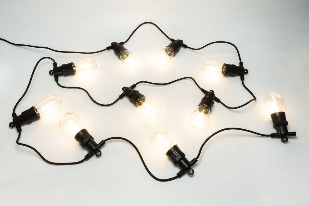 Denna ljusslinga innehåller 10 plastlampor med filamentdesign, som ger en vintagekänsla och använder energieffektiv LED-teknik. Slingan har en hållbar gummikabel, vilket gör den perfekt för utomhusbruk året runt. En utomhusadapter ingår för enkel installation, och den är idealisk för att skapa en mysig atmosfär på terrasser, i trädgårdar och vid festliga tillfällen.