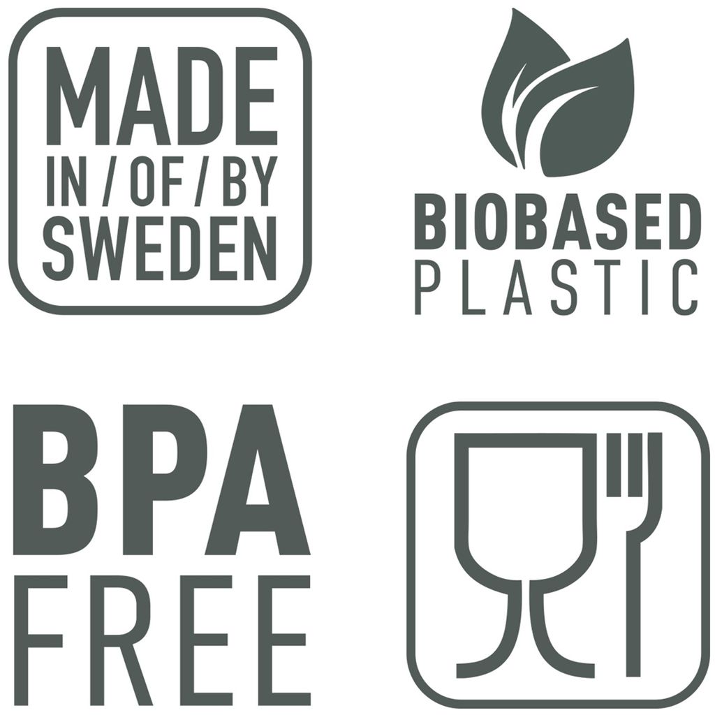 - Tillverkat av 100% BPA-fri biobaserad plast, säker för användning i mikrovågsugn och diskmaskin.