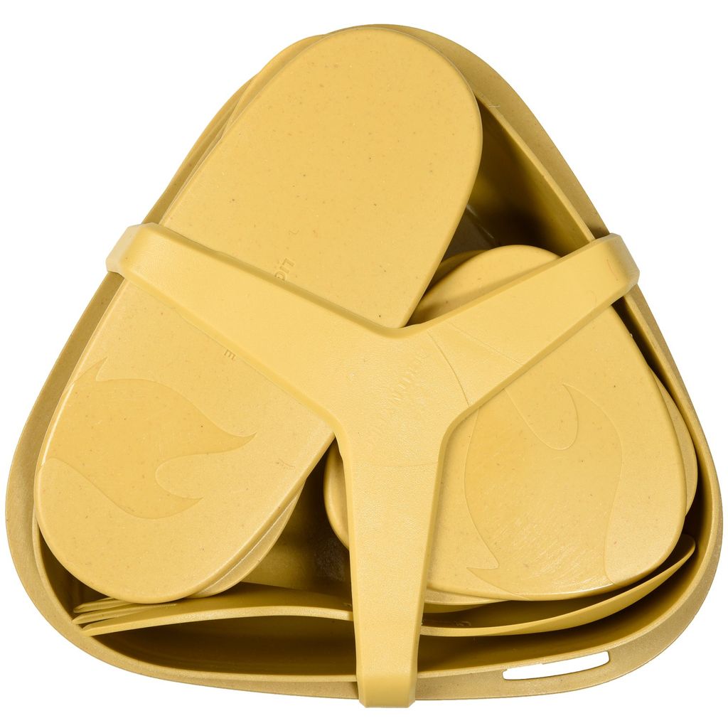 Spork är tillverkad av GMO-fri, majsbaserad bioplast. Alla övriga delar är tillverkade av bioplast baserad på certifierat sockerrör och träfiber (förutom gummiremmen som håller ihop kitet).