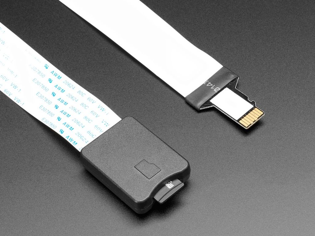 Stop fiddling with SD card sockets in the back of your latest gadget, and streeeeeeeeeetch out with a Micro SD Card Extender . This simple, but effective device gives you a long flexible cable, a psuedo Micro SD card on one end, and a matching micro SD card socket on the other. Plug in the card half and attach the socket wherever you like. This is a great hack for length constraints with 3D printers, single-board computers, data-logging kits and more. Get to your micro SD card in and out and safeguard against wear and tear.