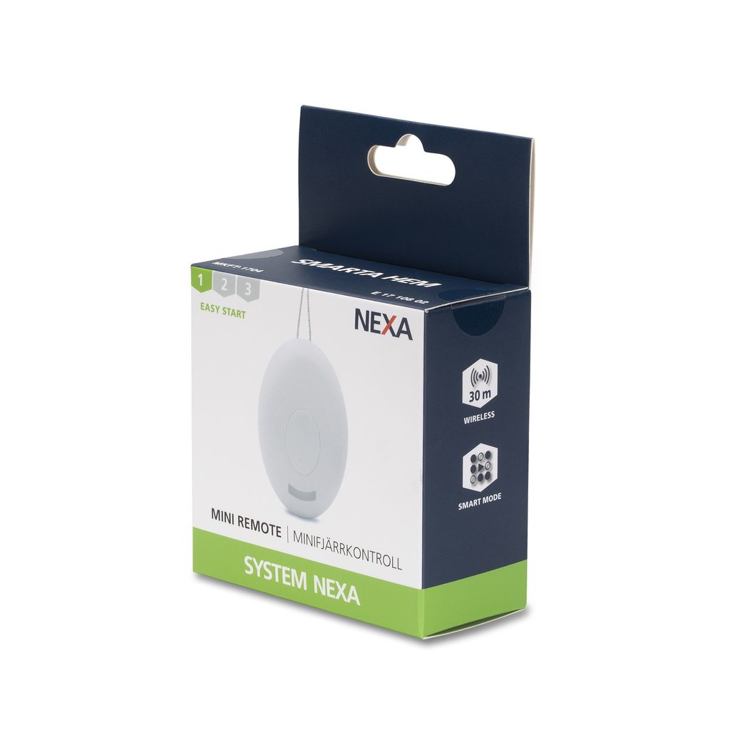 Äggformad minifjärrkontroll med hake för exempelvis nyckelring. Kan användas för att styra enskilda mottagare eller mottagare med Smart Mode.Enkel- och dubbelklick kommando. Fungerar med System Nexa mottagare.
