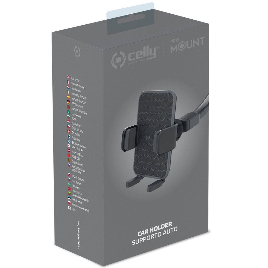 MountFlexPlus är en universell smartphone-bilhållare med sugpropp för placering på vindrutan eller på instrumentbrädan.