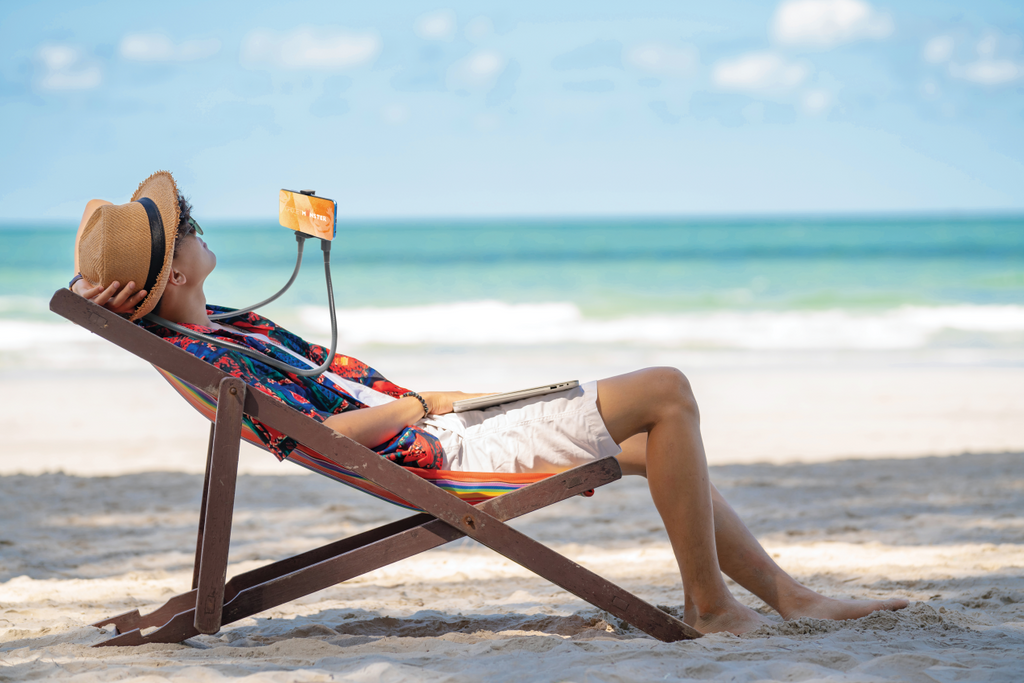 • Luta dig tillbaka i brassestolen och njut av film, klipp eller facetime på din smartphone