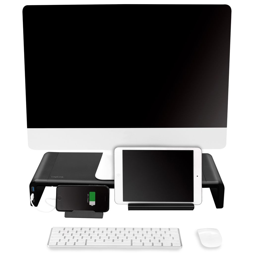 LogiLink Ergonomisk skärmhöjare, 420–520 mm bred, 2x USB 3.0, 1x USB-C