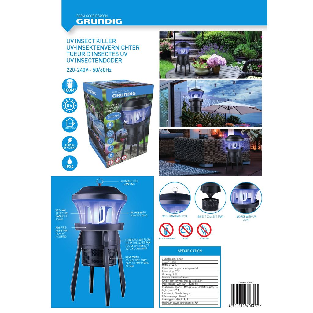 Grundig´s nya insekt-och myggfångare är för utomhusbruk och täcker en yta på cirka 100 kvadratmeter.