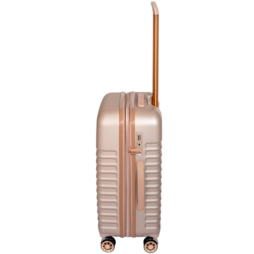 Genomtänkta detaljer som matchar rakt igenom. Dubbelhjul gör den stabil och lättmanövrerad, en inredning som följer väskans yttre färgkombinationer. Detaljer som nätficka och fack för småprylar, avdelare och packband där du placerar dina kläder som ligger säkert på plats.