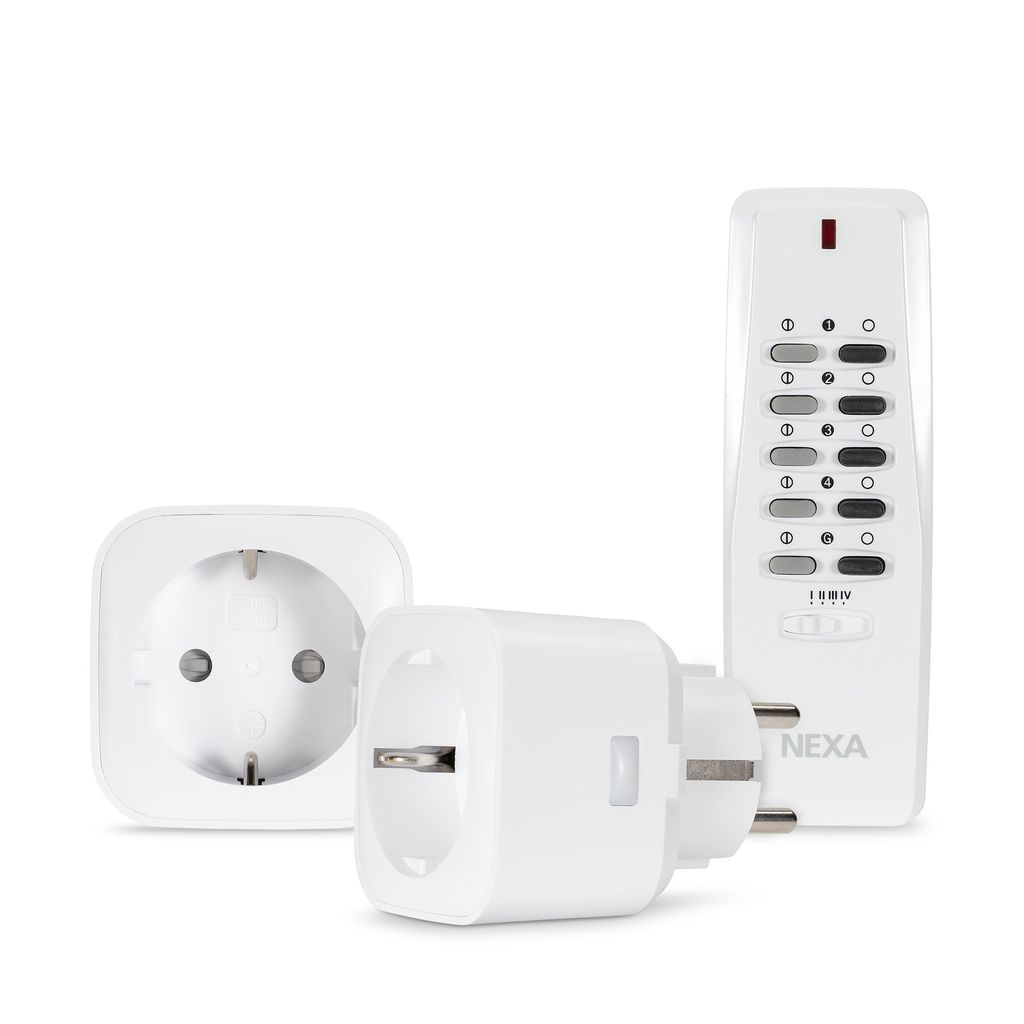 Två plug-in mottagare med fjärrkontroll.På/Av-knapp finns även på mottagaren. Systemet kan byggas ut med diverse olika mottagare exempelvis skymningsrelä och rörelsevakt. Fjärrkontrollen kan även användas för att styra övriga mottagare i System Nexa. Systemet är självlärande vilket ger en mycket enkel och flexibel installation och full kompatibilitet med övriga produkter i System Nexa.