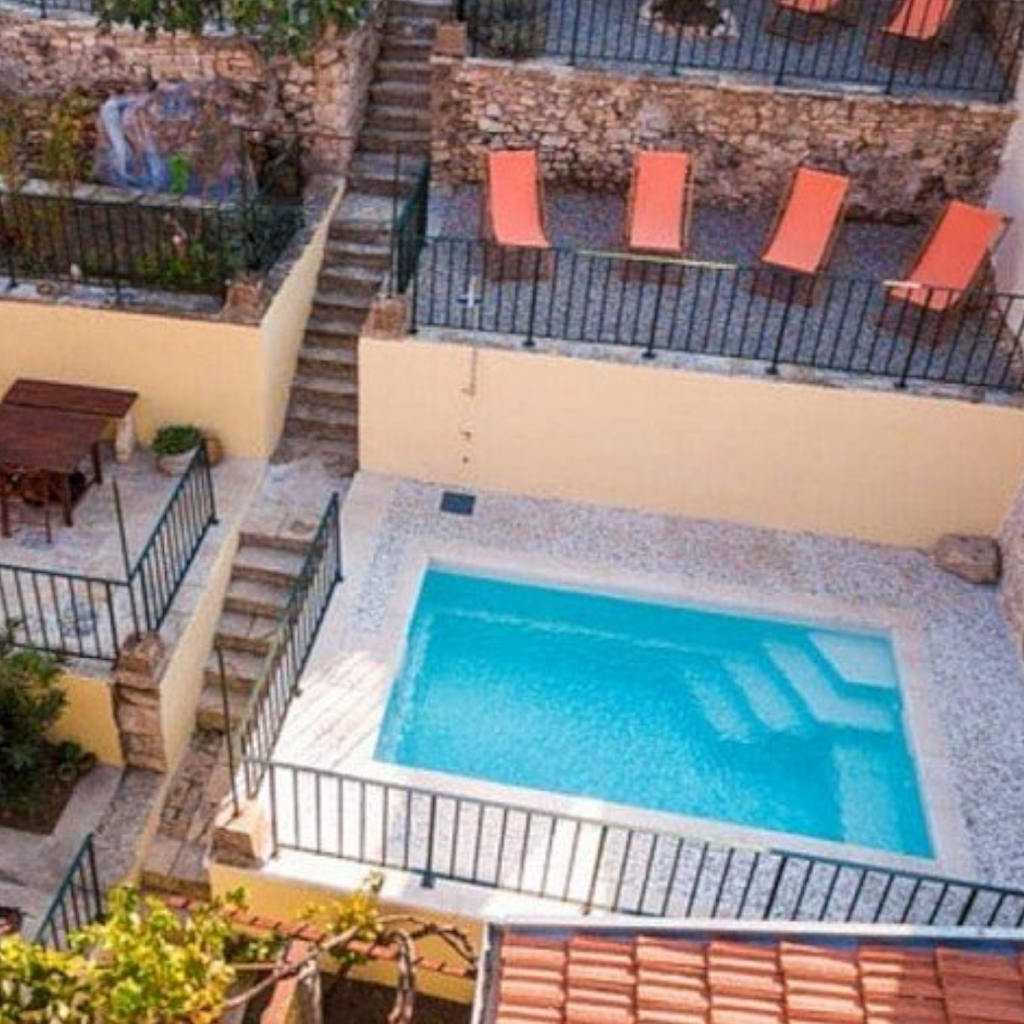 Den integrerade trappan har halkskydd och poolen har generösa sittplatser.