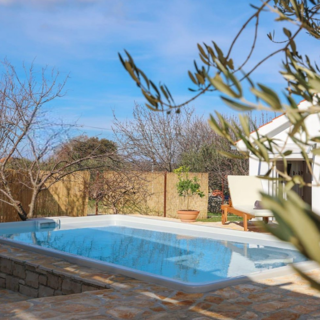 Den integrerade trappan har halkskydd och poolen har generösa sittplatser.