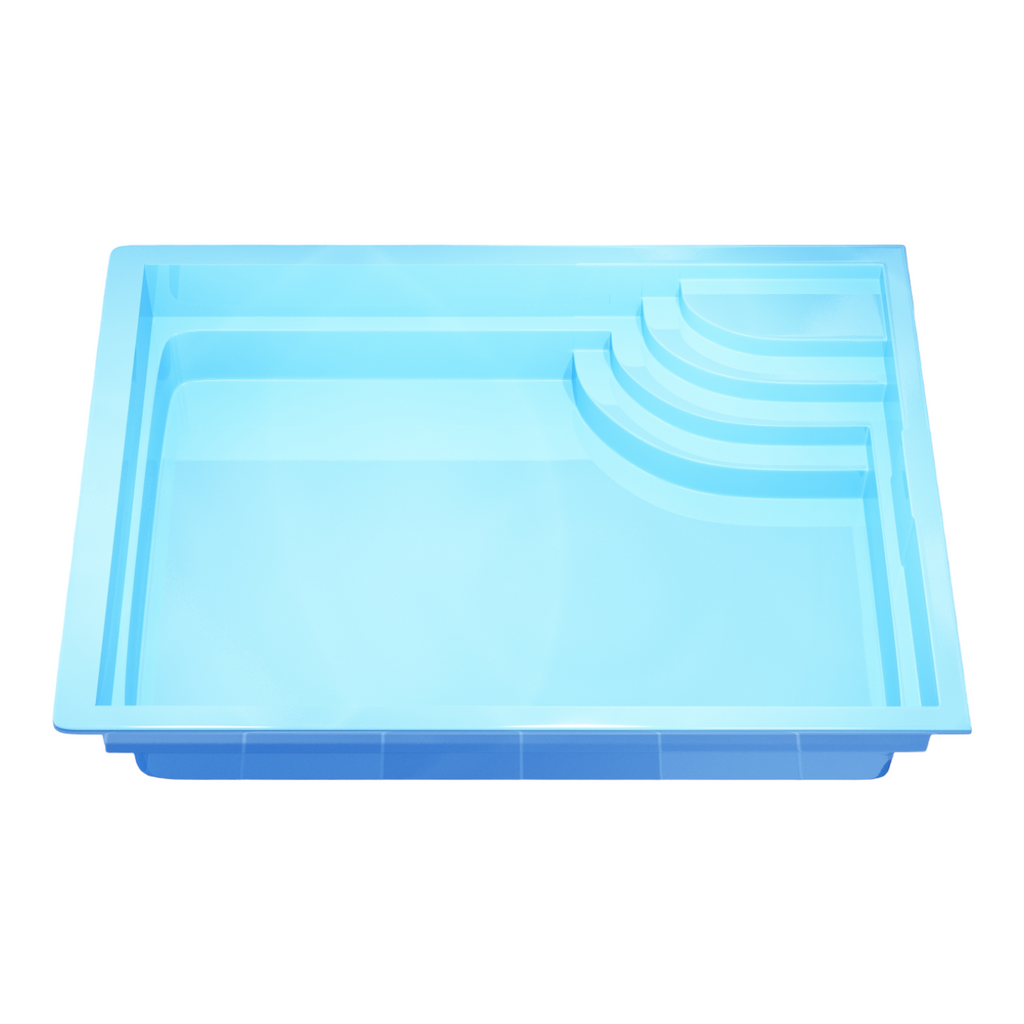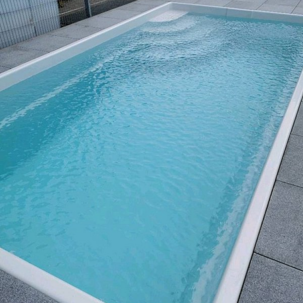 Alla våra modeller av glasfiberpool är stålförstärkta på sidan för extra stabilitet och hållfasthet. Denna glasfiberpool är så stabil att den klarar att lyftas utan stag i mitten av poolen. Glasfiberpoolen är även mycket tålig och byggd med hållbart material som har lång livslängd.
