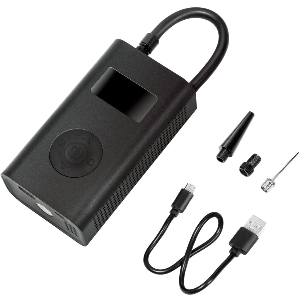 Med den här mångsidiga luftkompressorn kan man enkelt pumpa upp ett däck. Till exempel på bilar, motorcyklar, cyklar (racing- eller bilventil), barnvagnar med luftdäck eller till och med en boll.