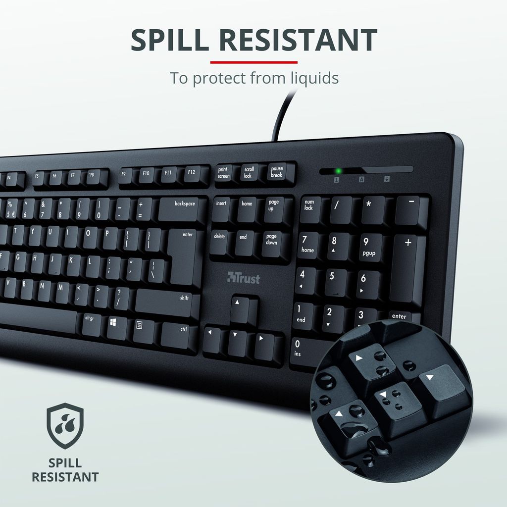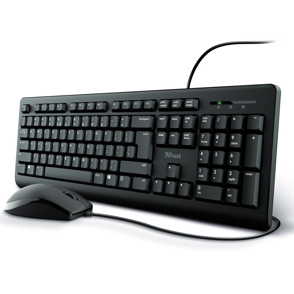 Trust Primo kit med kabelanslutet tangentbord- och mus - Svart