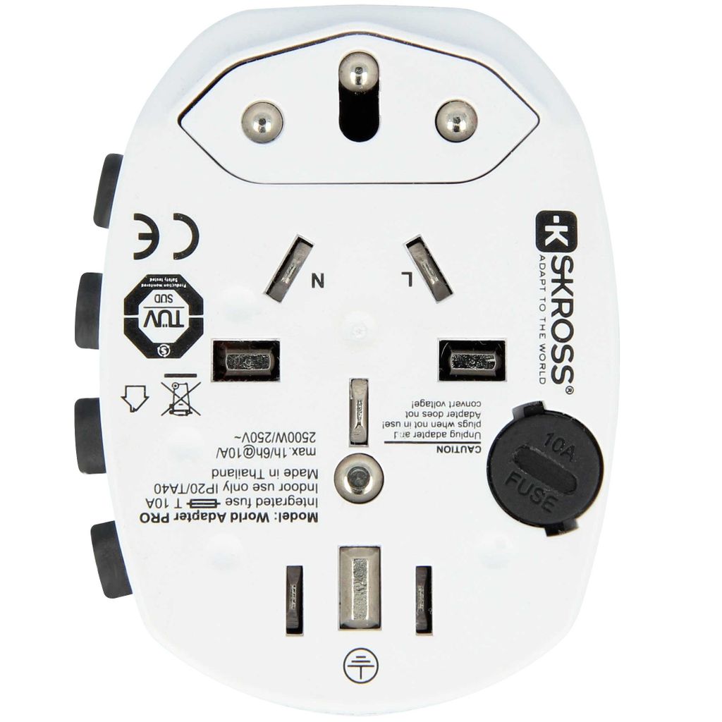 Den mångsidiga reseadaptern PRO – World säkerställer en enkel och säker anslutning av 2- och 3-poliga enheter från och till mer än 205 destinationer. Kan hantera en effekt på upp till, så att du till och med kan koppla in kraftfulla enheter som bärbara datorer eller resehårtorkar.