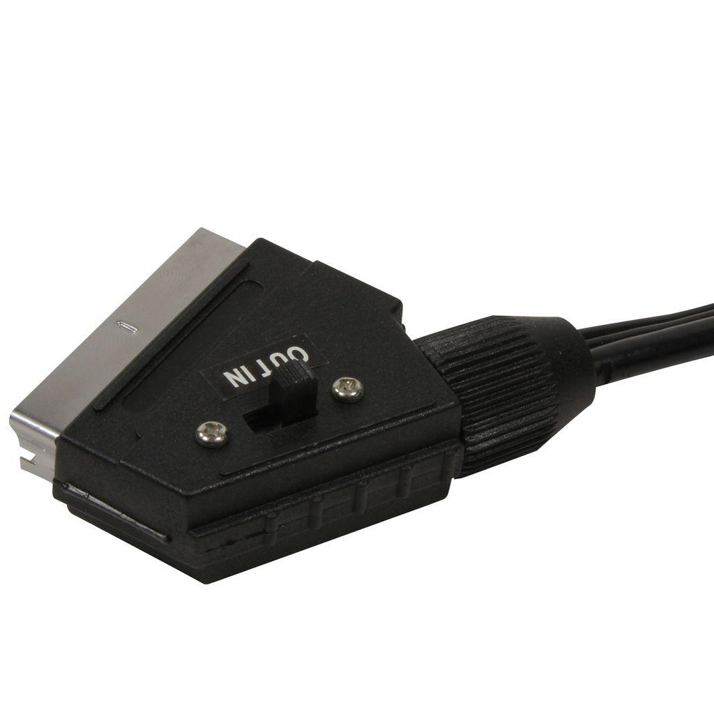 Kabeln har en omkopplare för val av riktning på audio/video-signal - Från Scart till RCA eller från RCA till Scart.