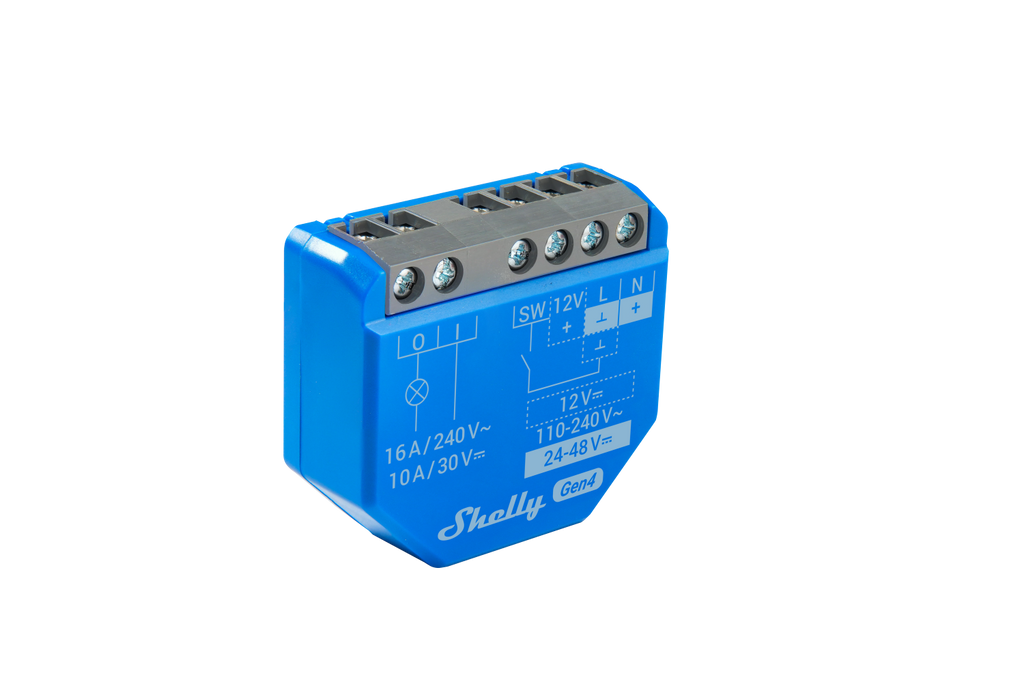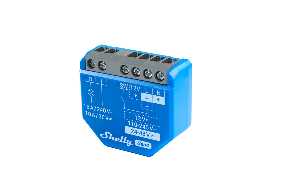 -Avancerade funktioner: Stöd för MQTT, HTTP och WebSocket för avancerad kommunikation. Alla anslutningar stöder TLS. Funktion Shelly 1 Gen4 erbjuder många användningsområden. Den kan matas med 12V DC, 24–48V DC eller 110–240V AC. Den potentialfria kontakten möjliggör styrning av garageportar, SG-Ready värmepumpar, bevattningssystem och mycket mer.