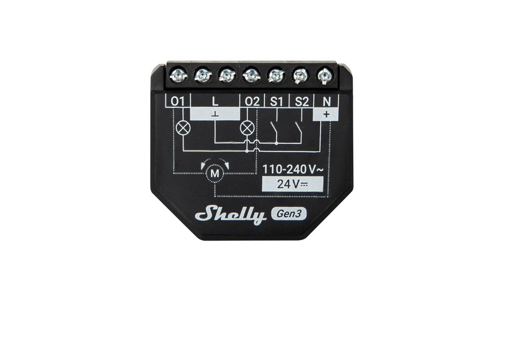 Shelly 2PM Gen3 är ett WiFi-styrt 2-kanals relä som främst är lämpligt för automatisering av rullgardiner, persienner, markiser och alla tvåvägs AC-motorer. De två integrerade effektmätarna möjliggör samtidig mätning av förbrukningen för varje kanal separat (PM = Power Metering), vilket gör enheten också lämplig för styrning av två ljuskanaler eller två vägguttag.