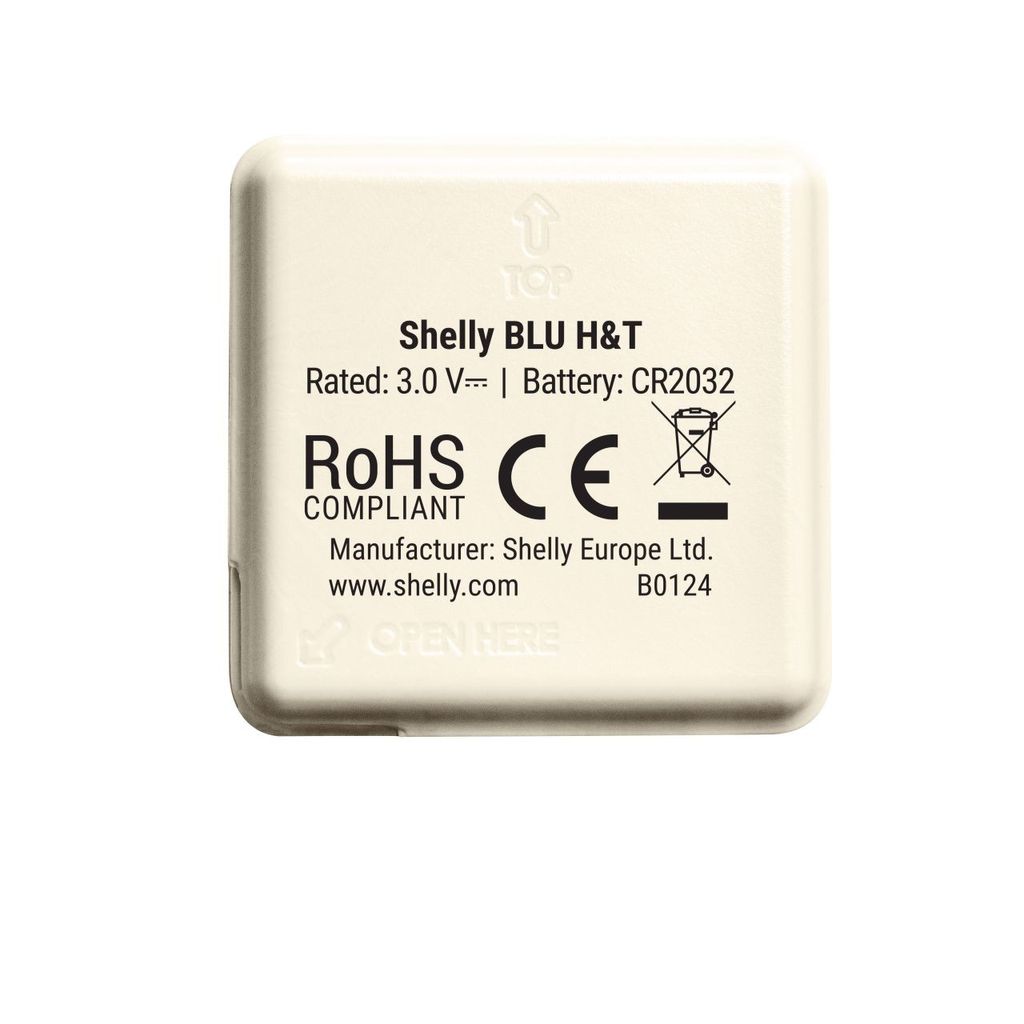 Shelly BLU H&T drivs av ett CR2032-batteri (ingår) och har en lång batterilivslängd på cirka tre år.