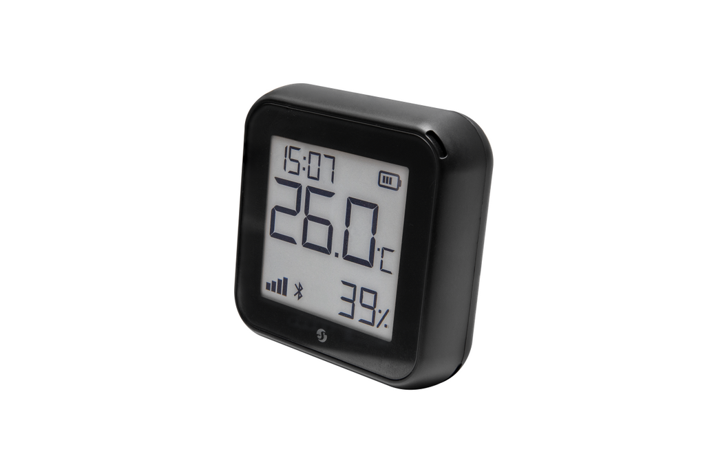 Shelly Plus H&T är en intelligent fukt- och temperatursensor som gör det enkelt att övervaka temperatur- och fuktighetsmätningar från din smartphone eller webbgränssnitt. I kombination med andra Shelly-enheter möjliggör Plus H&T automatisk värmestyrning och styrning av ditt badrumsfläkt. Shelly Plus H&T ansluts till ditt befintliga trådlösa WiFi-nätverk, och du behöver ingen gateway för att använda den. Den är utrustad med en blixtsnabb ESP Shelly C38F-chip och 8MB minne, så den är framtidsäkrad för nya funktioner och integrationer. Plus H&T (GEN 3) har en e-ink-skärm med låg förbrukning som registrerar även de minsta förändringarna i rummet och hjälper dig att upprätthålla ett bra inomhusklimat. Den kan drivas med 4 x 1,5V AA-batterier (medföljer ej) eller konstant spänning genom USB-C-kabel. Shelly Plus H&T kan enkelt ställas in och styras genom Shelly Smart Control-appen eller ditt föredragna smarta hemsystem. Shelly-enheter fungerar 100 % lokalt och behöver endast ett lokalt nätverk för att fungera. Shelly kan användas enskilt i Shelly Smart Control-appen eller med fler än 200 partnersystem såsom Google Home, Amazon Alexa, Home Assistant, Samsung SmartThings, Athom Homey och många fler. Funktion Genom Shelly Smart Control-appen är det enkelt att övervaka temperatur- och luftfuktighetsdata från Shelly Plus H&T. Genom webhooks, scener eller den inbyggda termostatfunktionen i appen, är det möjligt att styra andra Shelly-enheter baserat på mätningarna. Guide till golvvärmestyrning med Shelly: https://shelly.guide/application-guide/underfloor-heating/